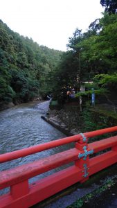 這是一座遍佈人造林的小鎮(古都裡千重子雙胞胎妹妹苗子長年工作的北山杉林區,會不會和這裡十分相似?)。我們在頻頻傳出熱浪來襲的時刻造訪京都,置身這深山林間意外地心曠神怡。或許不是楓紅時節,放眼望去一片空寂,很是符合我們樂於反其道而行的叛逆性格。赴日前關西地區豪雨成災,神護寺的入山步道也受到波及而圍起禁止入內的標誌。你難掩失落,在附近猶豫盤旋好一陣子才放棄。我們選擇沿山而行,改訪高山寺。而緣分玄妙,一如山路時而曲折卻也峰迴路轉,你喜悅地告訴我,眼前有通往神護寺的另一入口,際遇與意志適時相逢,我們心願得遂,在天色轉暗之前再次走向神護寺。沁涼山徑旁有一彎溪河,淙淙水聲彷彿是林間的引路精靈,一路相伴。通過一座跨越河流的小橋,罕見人跡的山間終於出現了建物,一棟緣溪而建的觀光旅店,有旅客穿著浴衣,不知有漢,無論魏晉,悠閒地在溪旁涼亭裡風雅小酌,觀賞神秘的藝妓表演…。你說,我們島嶼的山區觀光哪天才可以放棄以擴音器播放著穿腦且劣質的卡拉OK,島民何時才願意安靜下來,尊重彼此與天地的寧靜,如京都高雄山的旅人們低調謙和感受自然的慷慨贈與。旅店旁的山徑矗立一塊標示,說明前方不遠處便是文覺上人發願重建整修的神護寺,我們虔誠如朝山的信徒,一階階拾級而上,揣摩近千年前這位頑固的僧人一路從現下京都市東山區的三十三間堂(即法住寺)獨行來到這偏遠的靈山護持神佛的心念,他最終可有順利抵達菩提彼岸,出脫四生苦輪?無論結果如何,文覺的一生應該是幸福的,總有那麼一處信仰收容他與世不容的狂顛。我們的高雄山之行,在各自雙手合十、對著門扉緊閉的神護寺大門許下心願後結束。下一次楓紅,讓我們並肩消融入高雄山的景致中,佇立成潑墨山水裡的兩塊石頭。